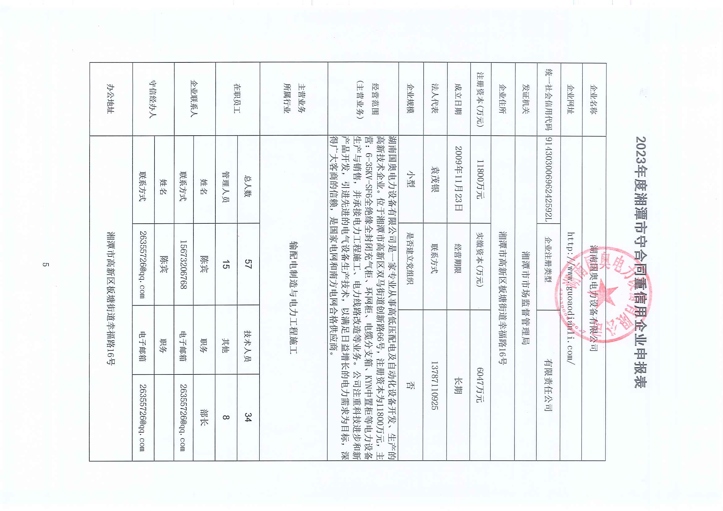 本企業(yè)根據(jù)《湘潭市守合同重信用企業(yè)申報規(guī)定》等編制 2023 年度企業(yè)信用報告書,并保證本報告書內(nèi)容真實(shí)、準(zhǔn)確、完整。