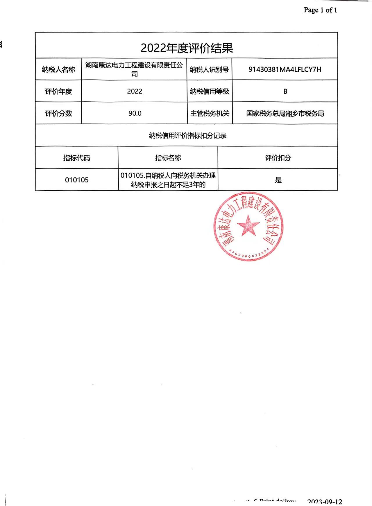 企業(yè)納稅信用等級(jí)報(bào)告: