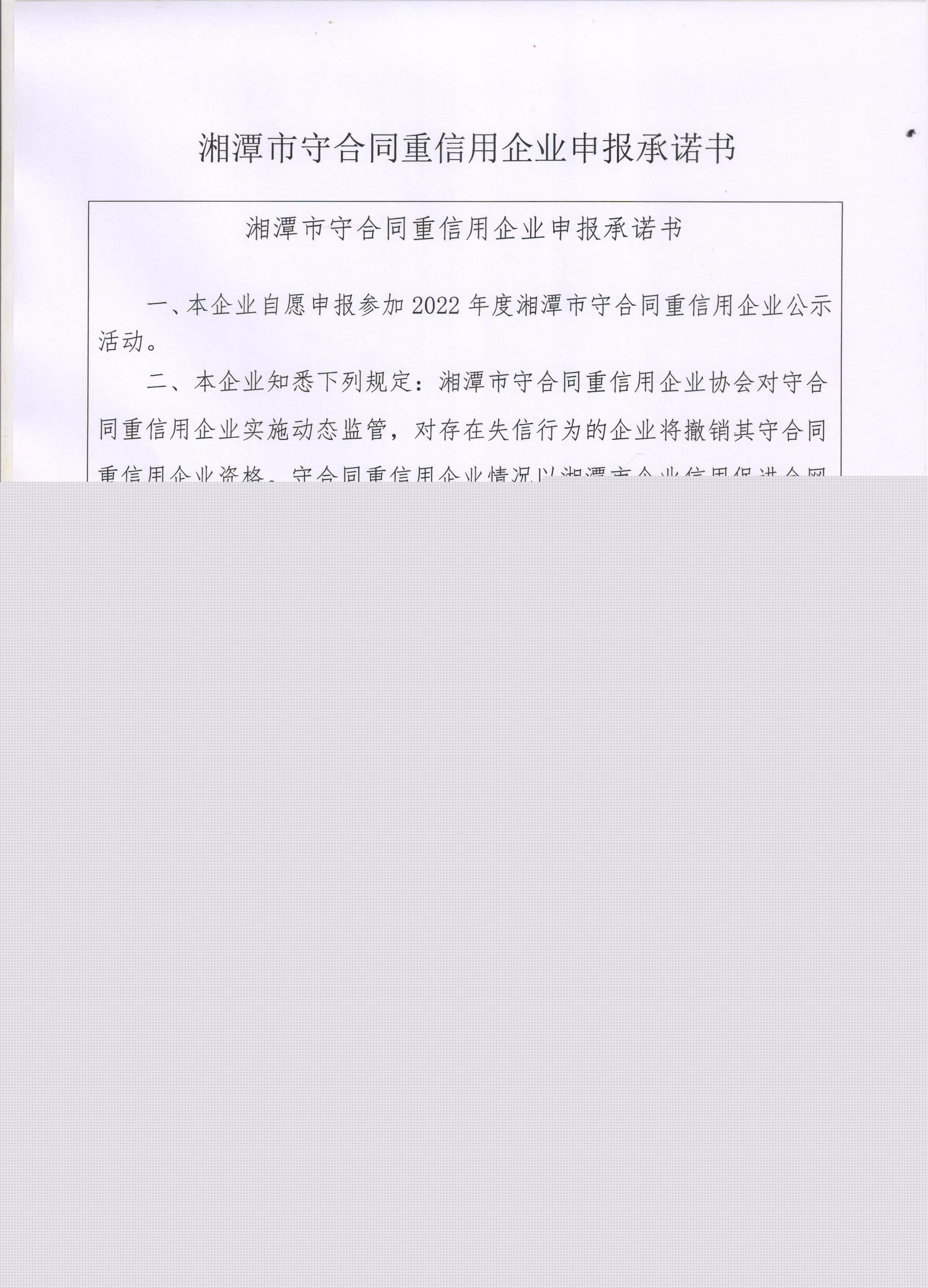 本企業(yè)根據(jù)《湘潭市守合同重信用企業(yè)申報(bào)規(guī)定》等編制 2022 年度企業(yè)信用報(bào)告書,并保證本報(bào)告書內(nèi)容真實(shí)、準(zhǔn)確、完整。