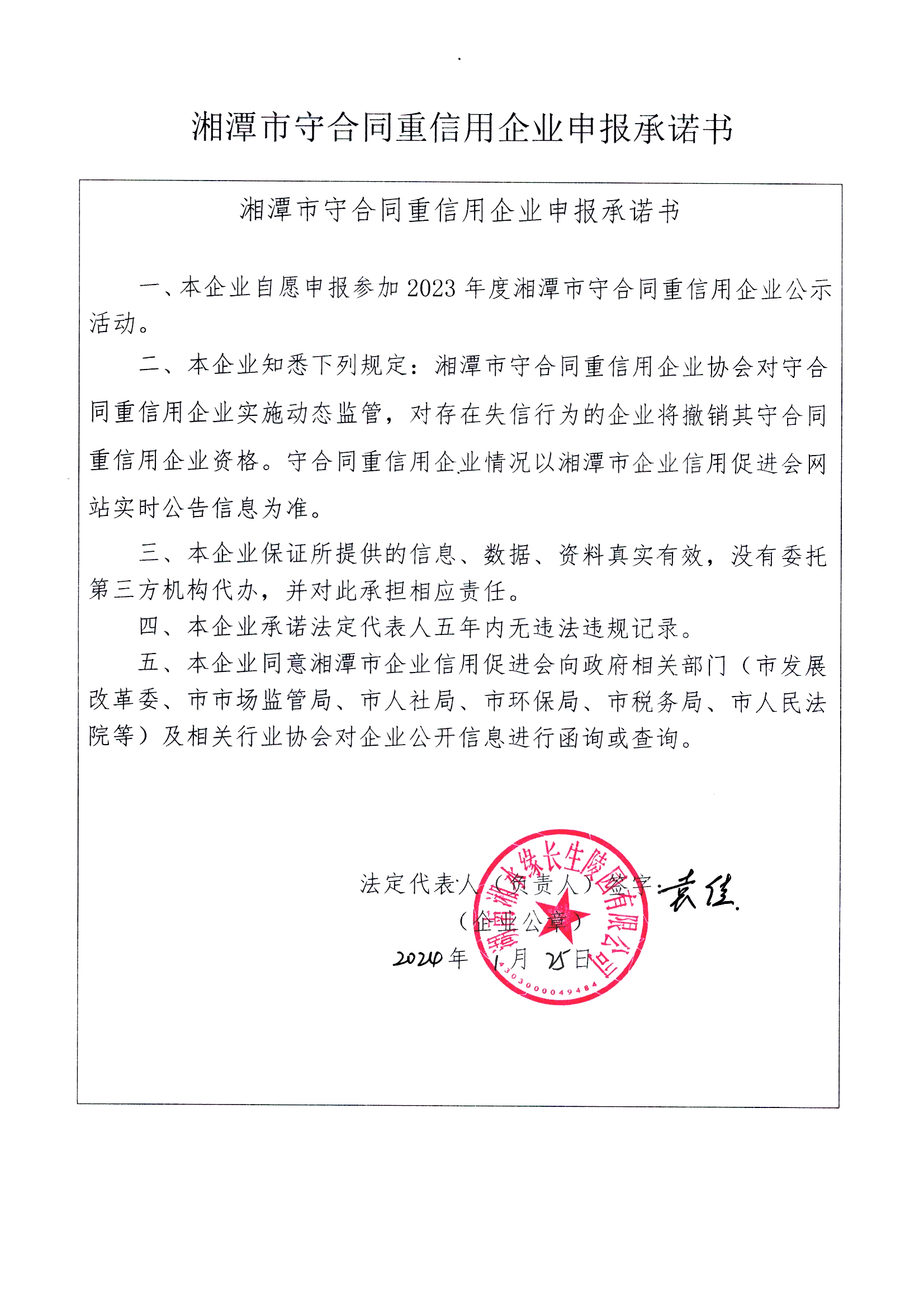本企業(yè)根據(jù)《湘潭市守合同重信用企業(yè)申報(bào)規(guī)定》等編制 2023 年度企業(yè)信用報(bào)告書,并保證本報(bào)告書內(nèi)容真實(shí)、準(zhǔn)確、完整。