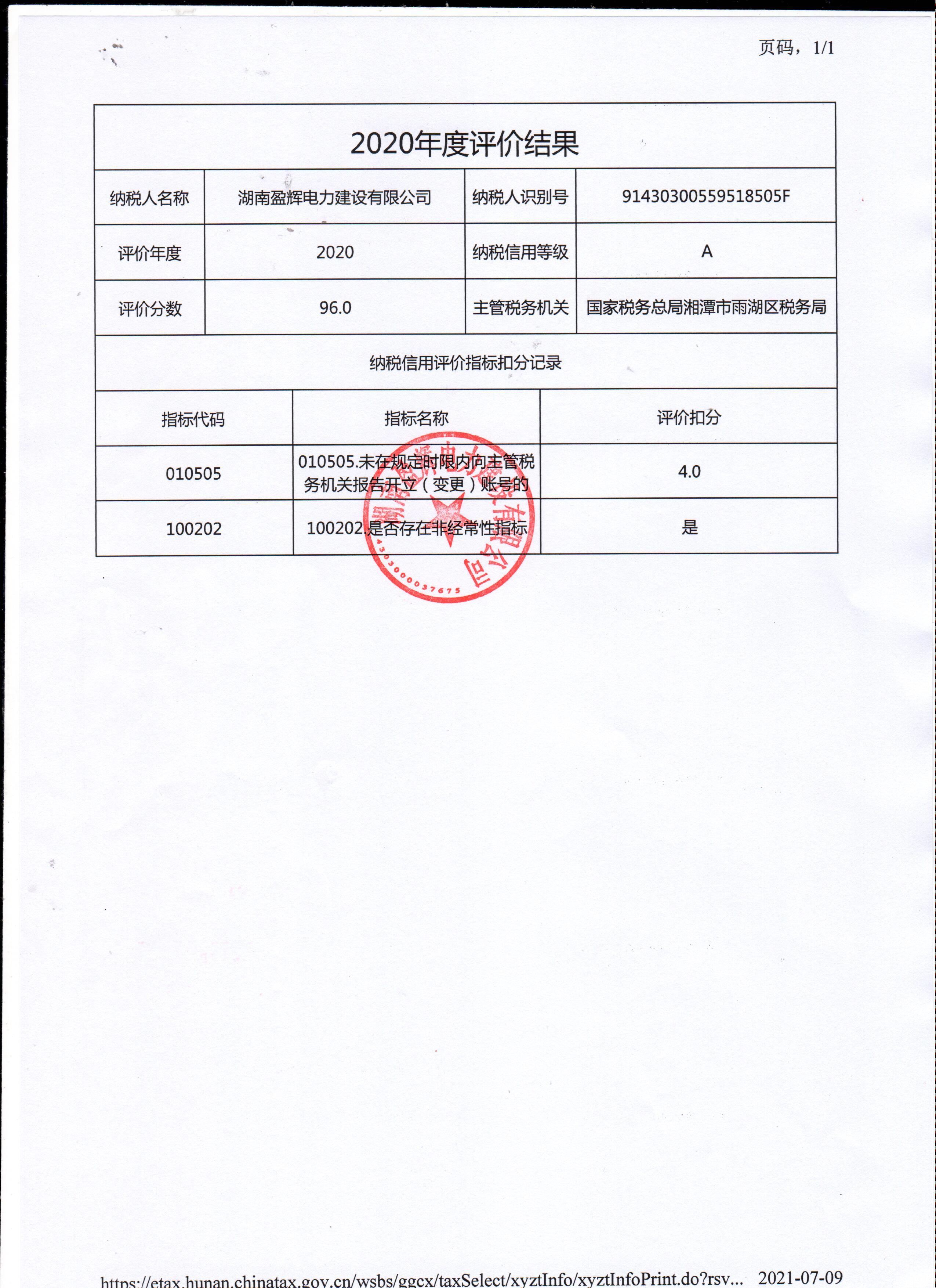 企業(yè)納稅信用等級(jí)報(bào)告: