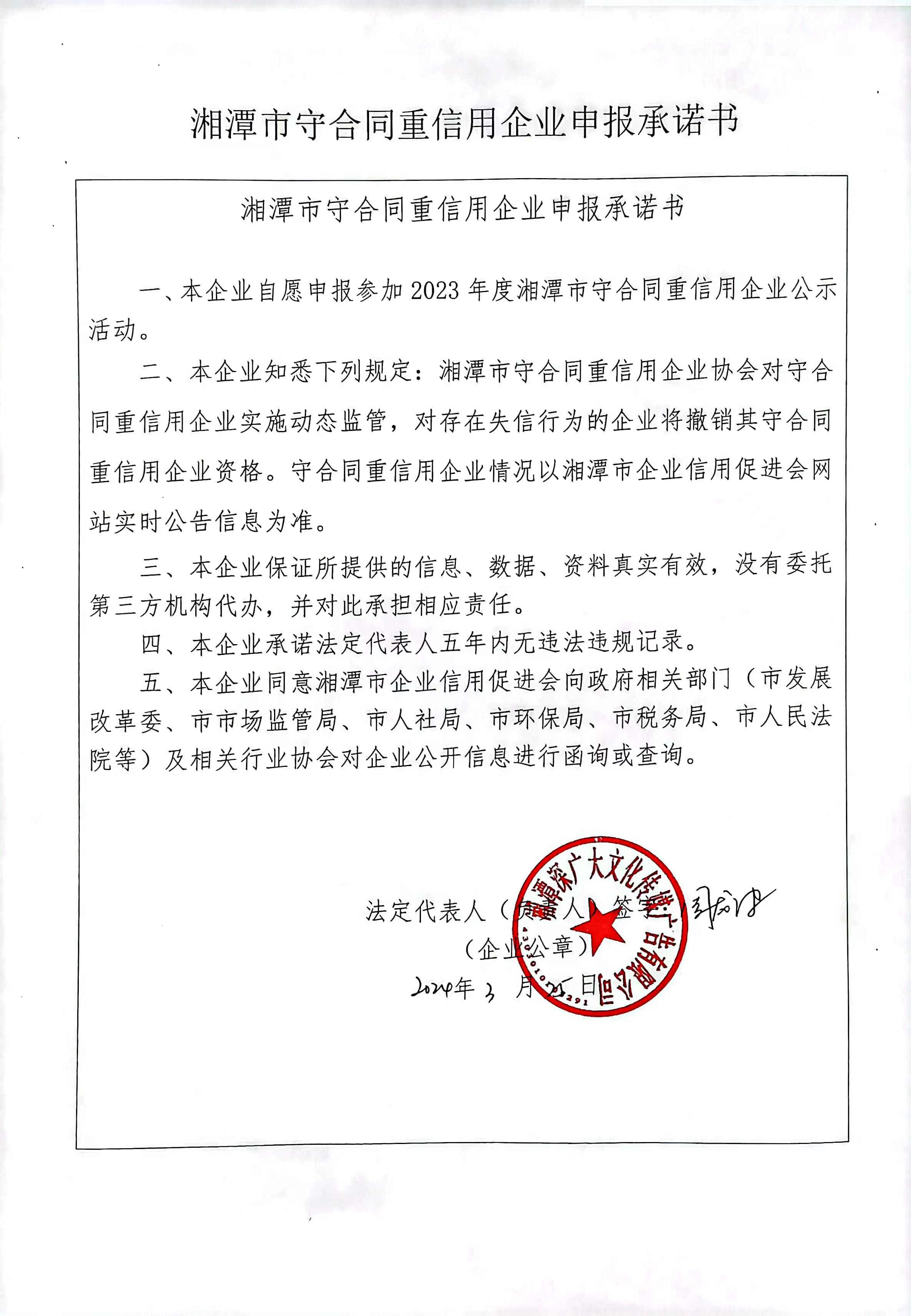 本企業(yè)根據(jù)《湘潭市守合同重信用企業(yè)申報(bào)規(guī)定》等編制 2023 年度企業(yè)信用報(bào)告書,并保證本報(bào)告書內(nèi)容真實(shí)、準(zhǔn)確、完整。