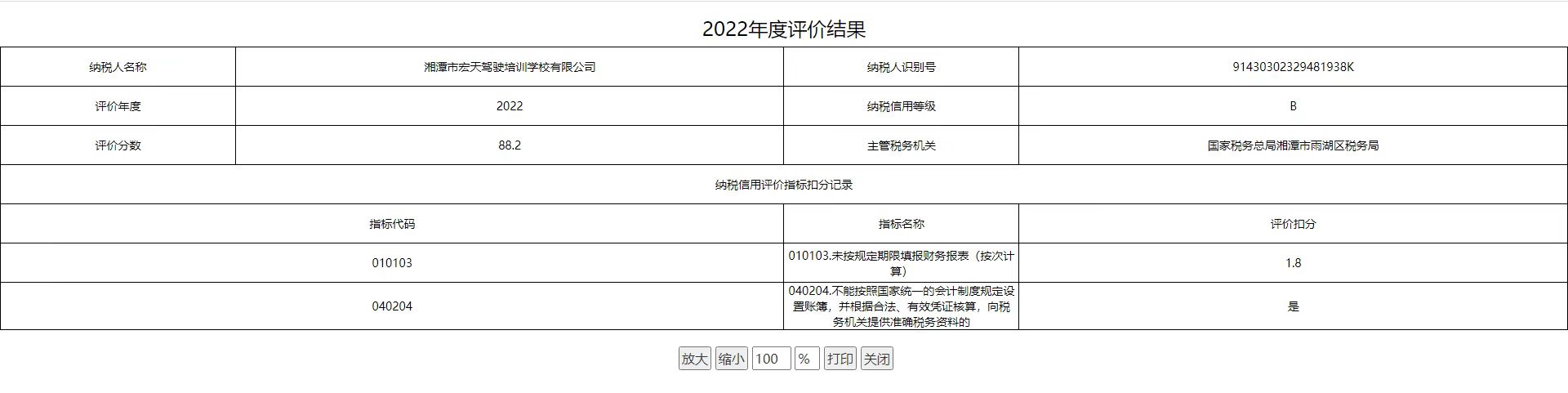 企業(yè)納稅信用等級報告: