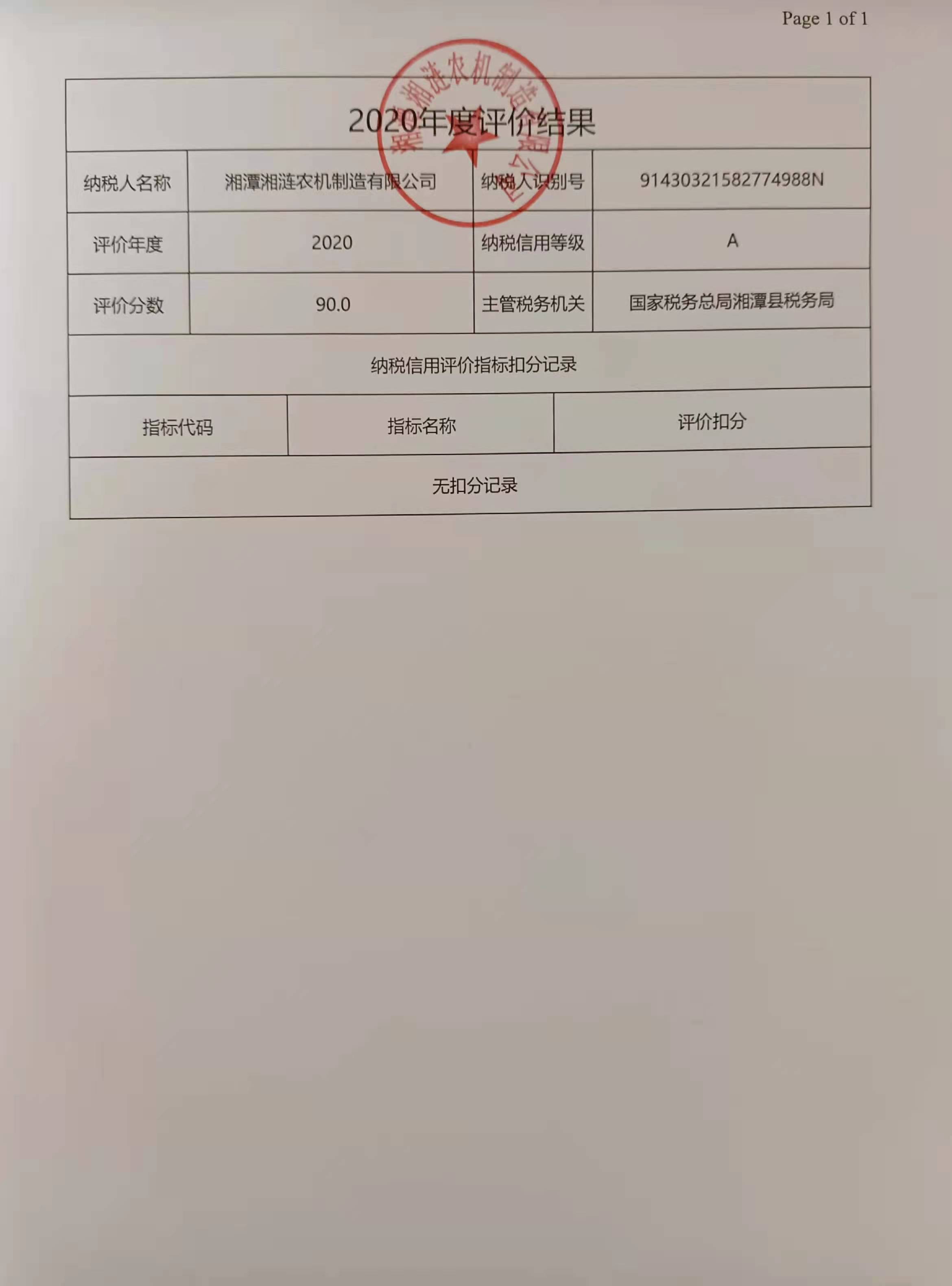 企業(yè)納稅信用等級(jí)報(bào)告: