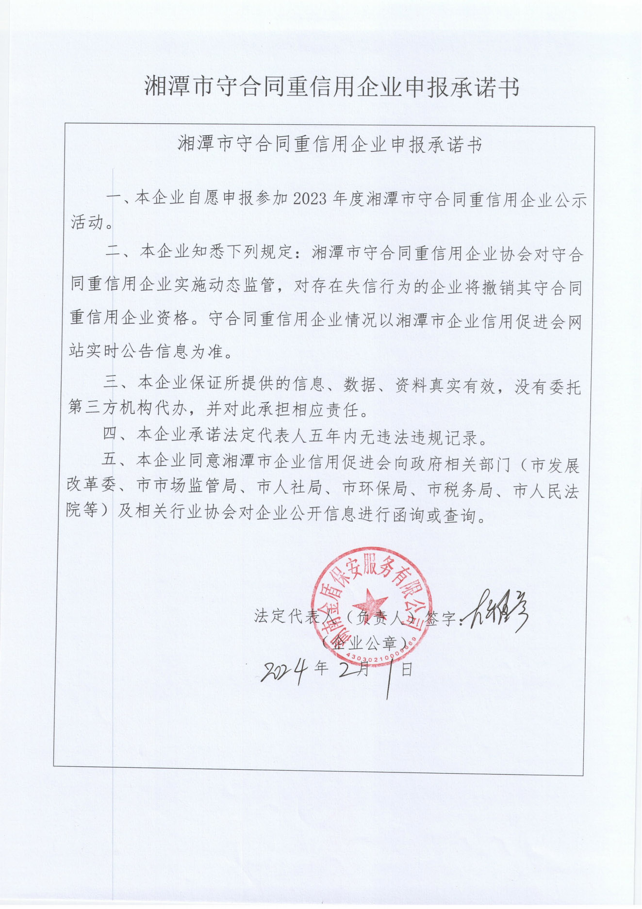 本企業(yè)根據(jù)《湘潭市守合同重信用企業(yè)申報規(guī)定》等編制 2023 年度企業(yè)信用報告書,并保證本報告書內(nèi)容真實(shí)、準(zhǔn)確、完整。